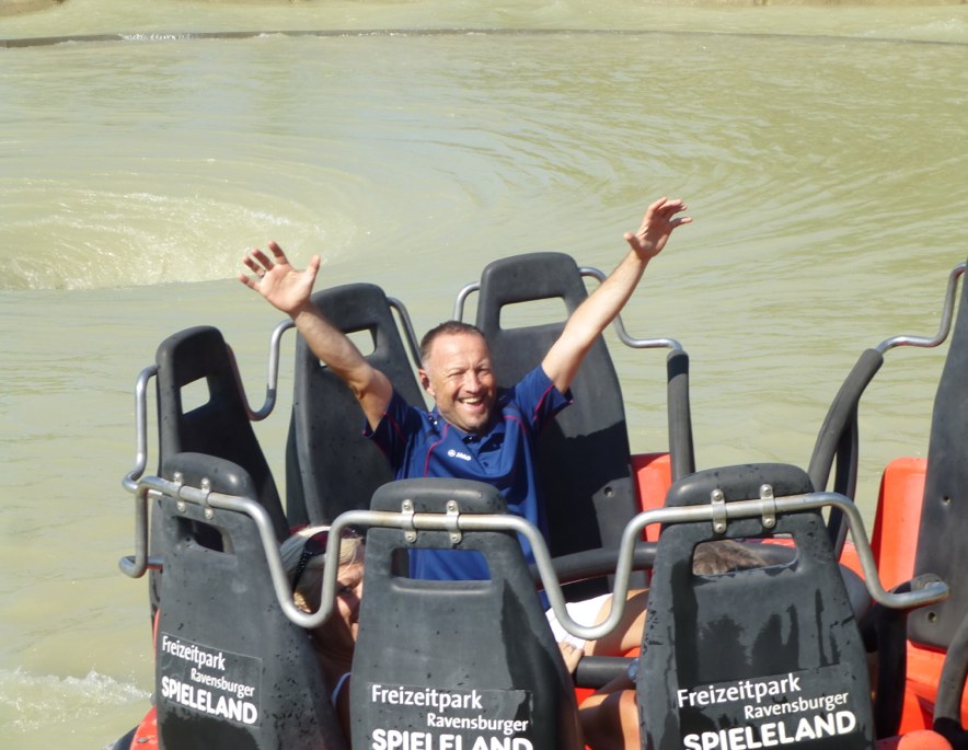 Auch den Trainern vom Fussballcamp Schmid steht der Schweiß auf der Stirn. Bei tropischen Temperaturen von knapp 40 Grad nehmen sich die Trainer und Betreuerinnen eine kleine Auszeit und hoffen auf eine kühle Erfrischung und ein paar Spritzer beim Rafting im Ravensburger Spieleland.